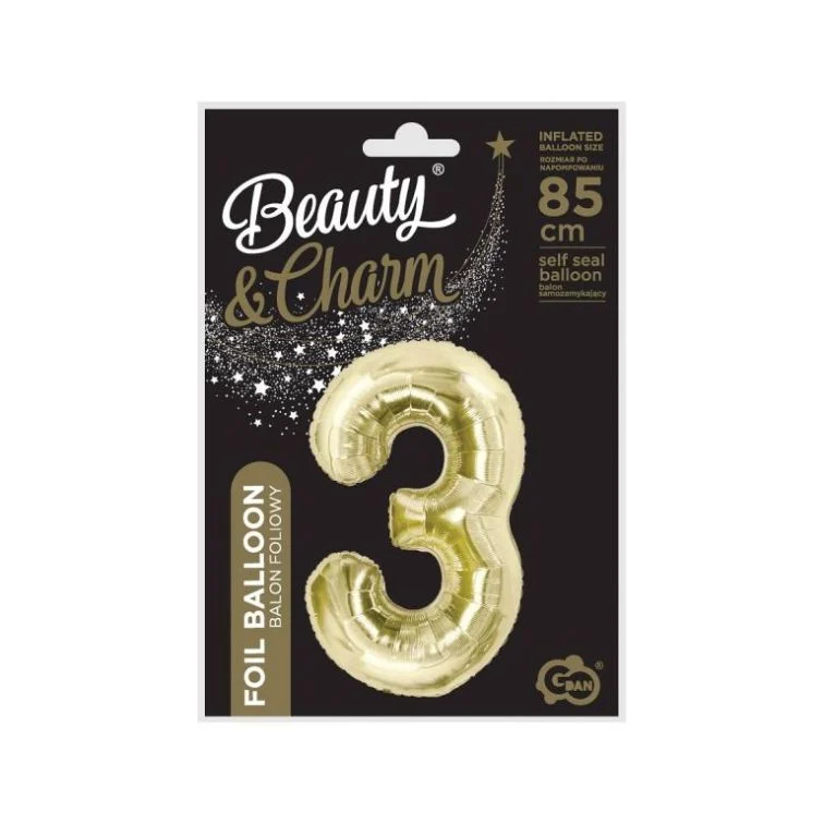 Balon din folie Cifra “3” 85 cm (34″) Sampanie