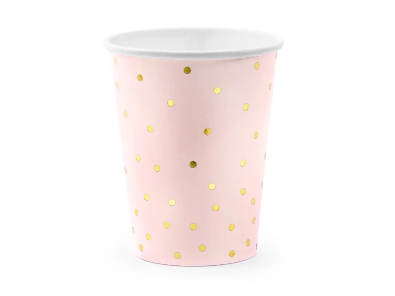 Set pahare din hârtie roz cu auriu 260 ml, 6 buc
