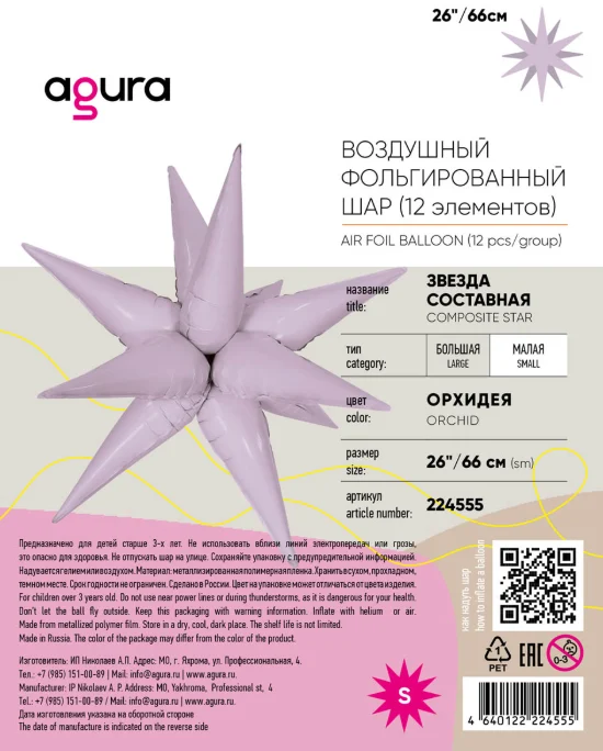 Фольгированный шар 3D Составная звезда 66 см (26") Орхидея AG