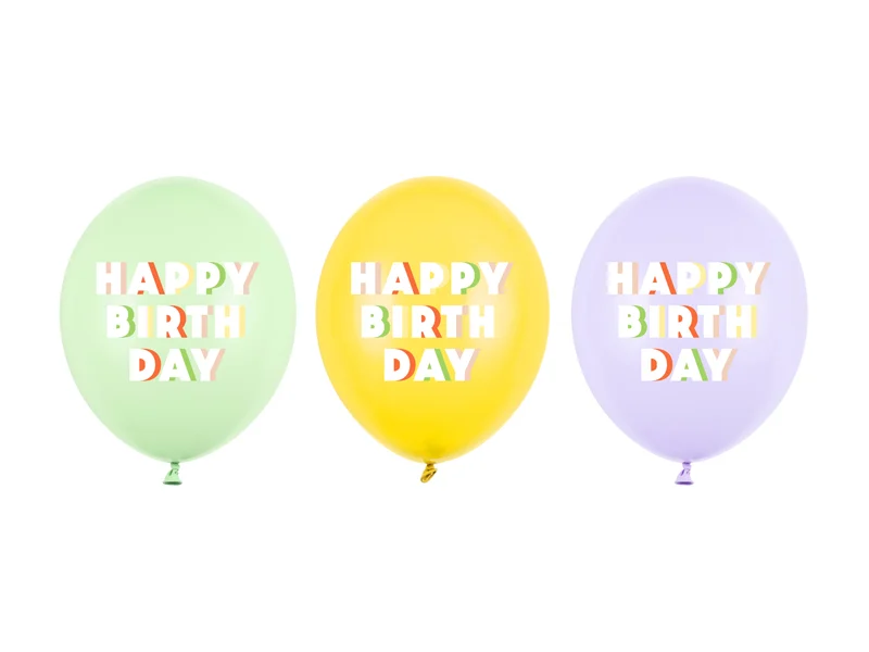 Balon latex cu desen 30 cm (12″) Happy Birthday, mix bej, SB