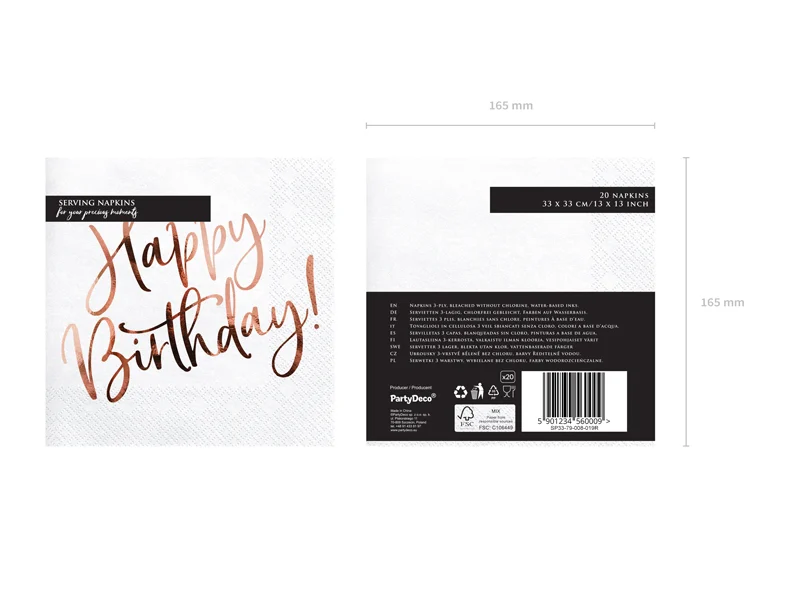Servetele hartie 33x33cm, Happy Birthday, albe-roz gold