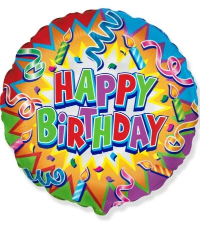 Balon din folie Cerc Happy birthday confeti și lumânări 45 cm (18″)