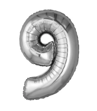 Balon din folie Cifra „9” 81 cm (32″) silver