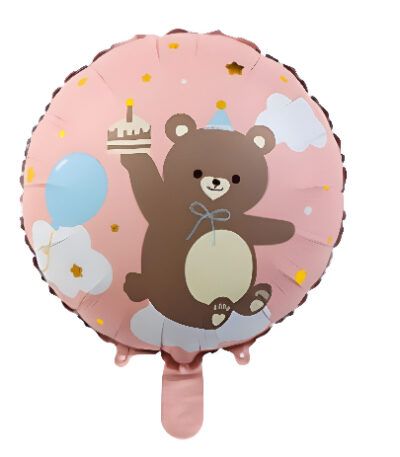 Balon din folie Cerc roz cu ursulet/ Aniversare 48 cm (19″)
