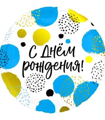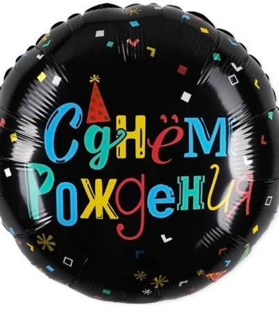 Balon din folie Cerc cu desen 48 cm (19″) „С днем рождения”
