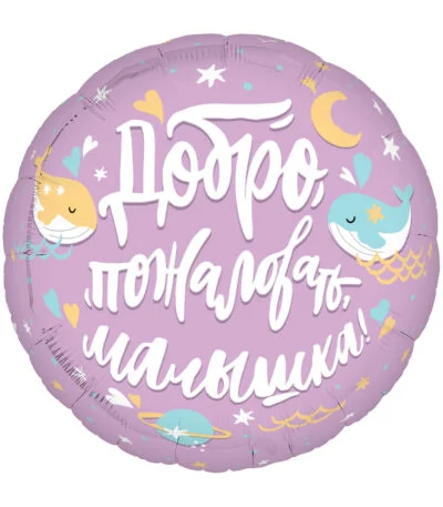 Balon din folie Cerc 46 cm (18″) „Добро пожаловать, малышка, Кит”