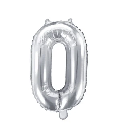 Balon din folie Cifra „0” 35 cm (14″) argintiu