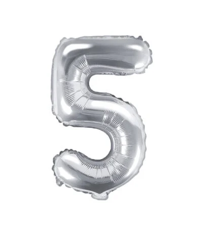 Balon din folie Cifra „5” 35 cm (14″) argintiu