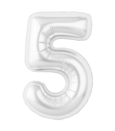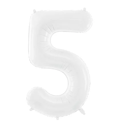 Balon din folie Cifra „5” 86 cm (34″) alb