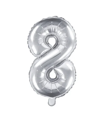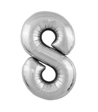 Balon din folie Cifra „8” 35 cm (14″) argintiu