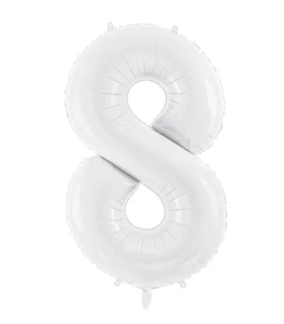 Balon din folie Cifra „8” 86 cm (34″) alb